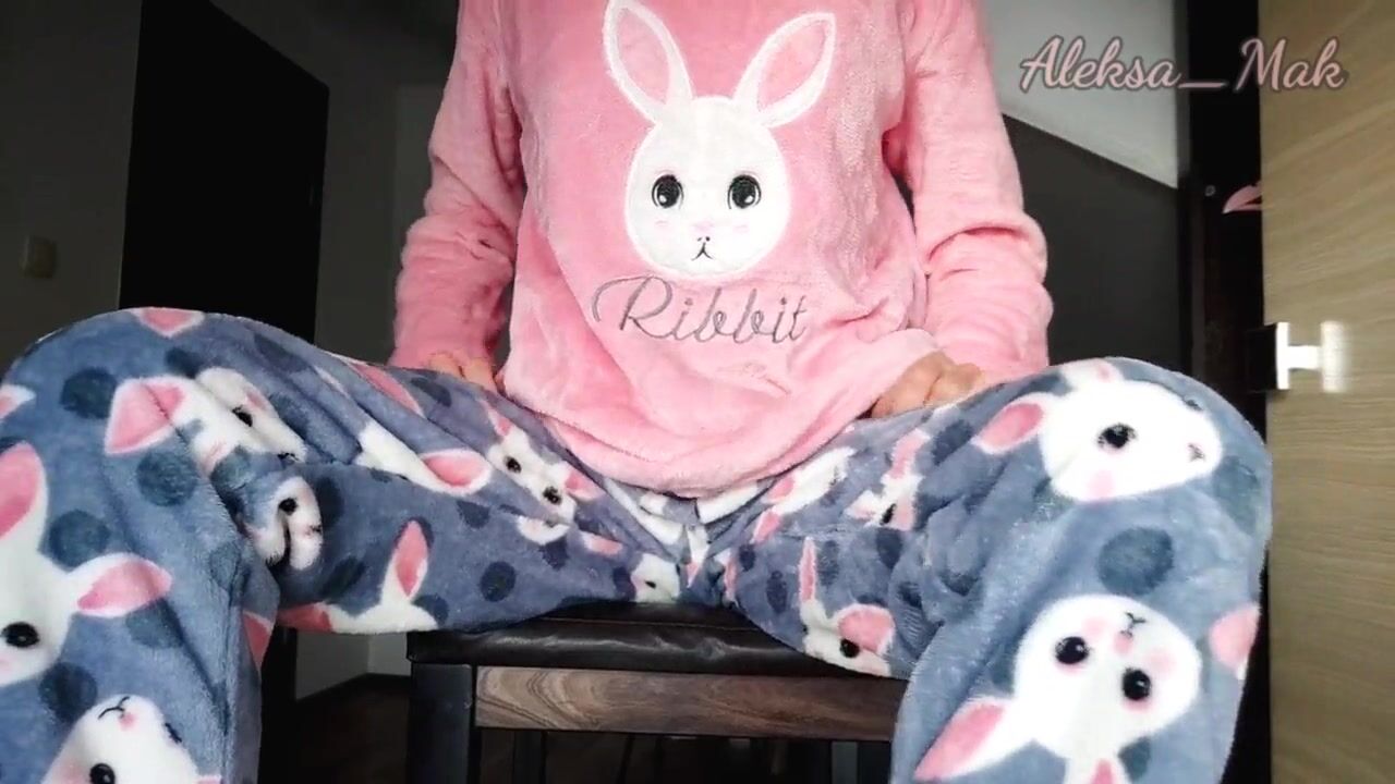 Schoolgirl in Pajamas Teases and Masturbates Pussy