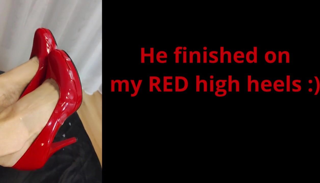 Sex w czerwonych szpilkach. Spuścił się na moje szpilki i stopy. Dominacja moja i jego. Cum on feets