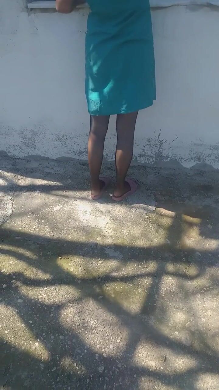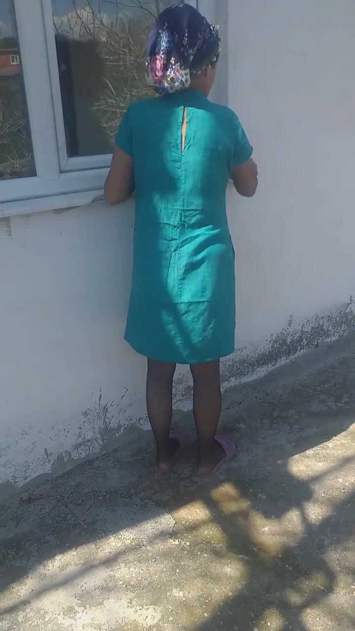 Sexy cleaner who wipes glass wants to arouse