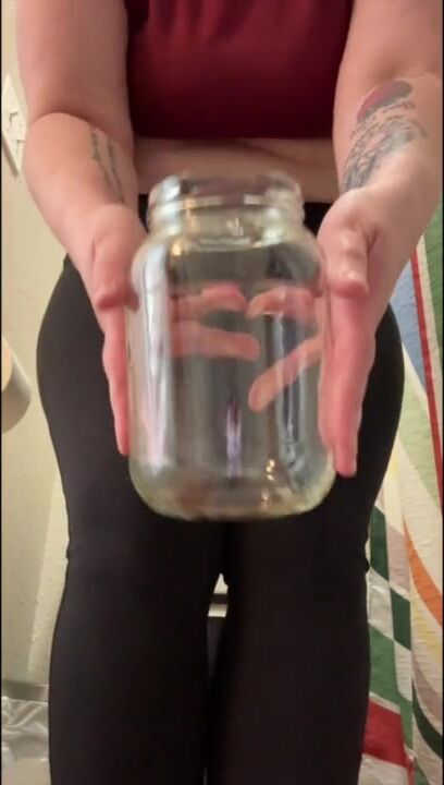 Sexy PAWG Pisses In Glass Jar