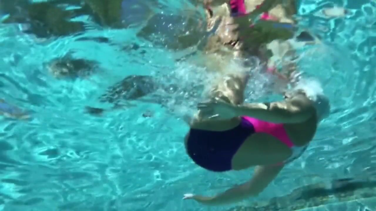 Slick body and pointed toes, pool socks and PVC swimming costumes