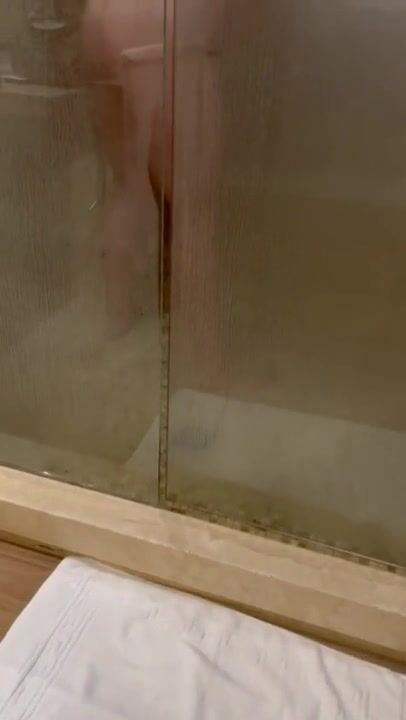 Spiata nella doccia con dildo