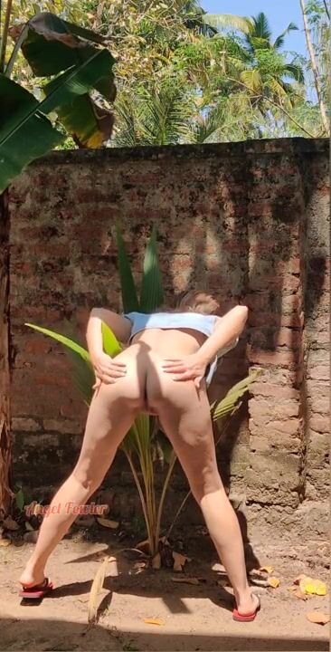 Spread gaping pussy for pissing in Public Tropical Nature {almost caught}