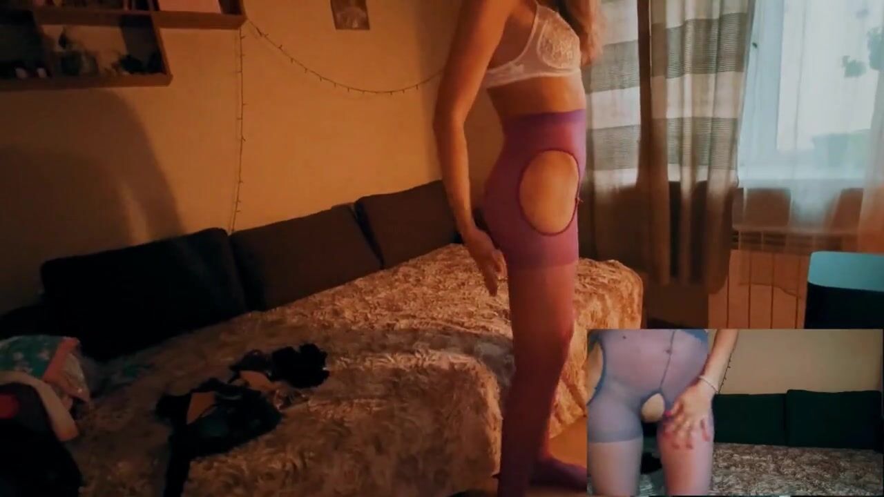 Stepsister in Stockings tries on Lacy Lingerie for a Date on Tinder while her Boyfriend is at Work