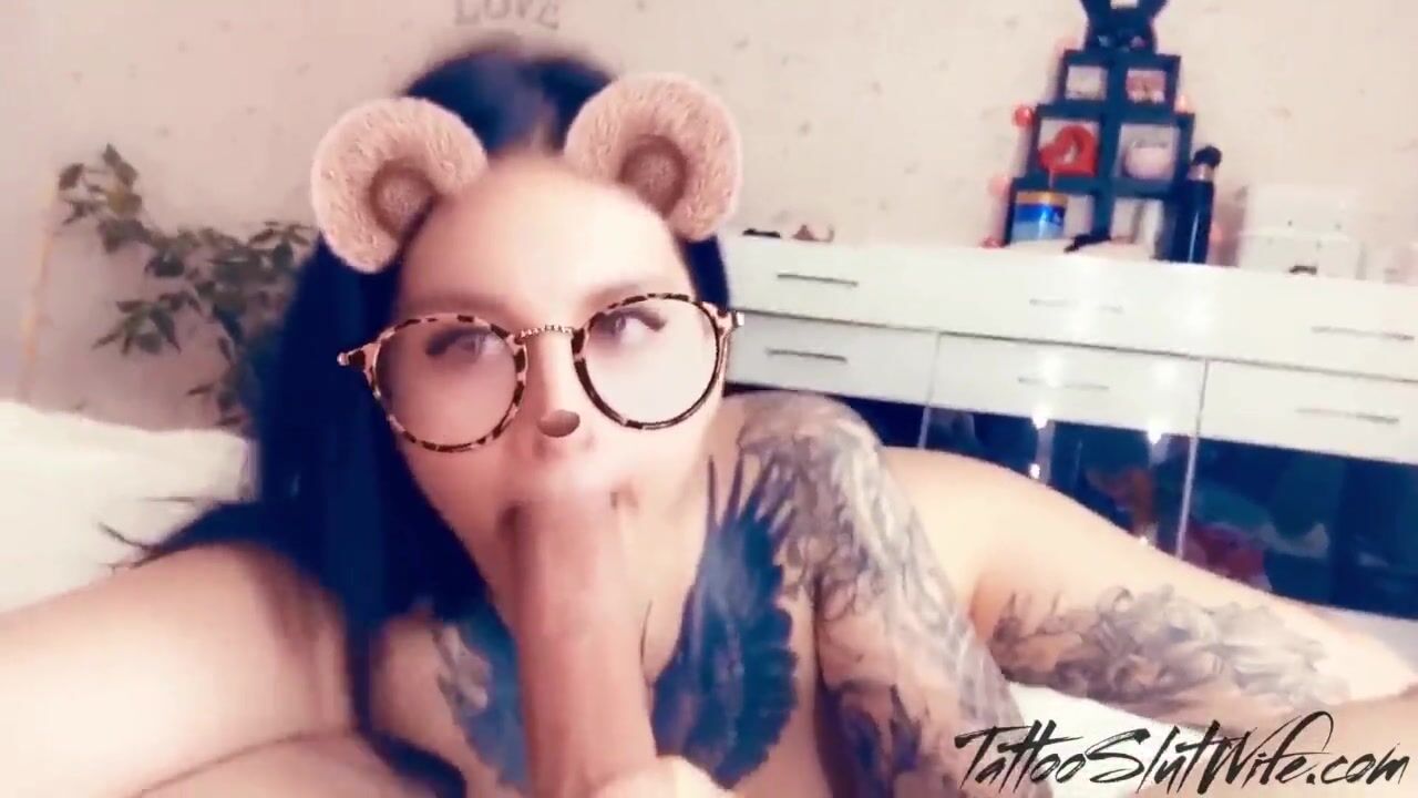 Tattooed Babe with Snapchat Mask Romantic Blowjob Dick Boyfr