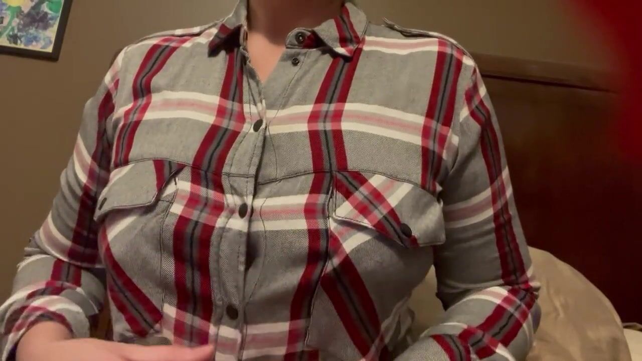 Tit teasing in button up shirt, braless