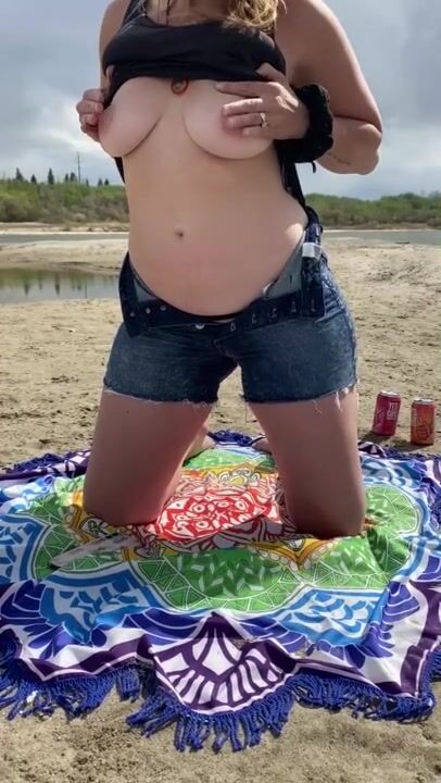 Titty Drop on a Sandbar ~ PUPLIC NUDITY ~ Amature MILF