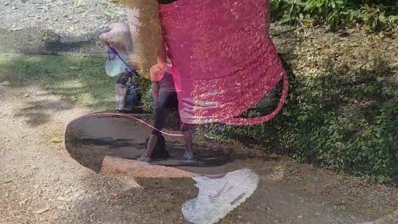 while I run I have a nice meeting and ... (Pegging - Outdoor)