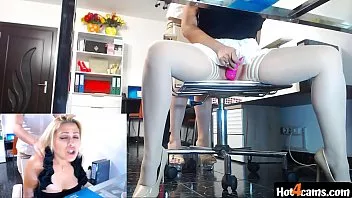 White high heels office fun with squirting on the floor | LIVE ON blondikva.hot4cams.com