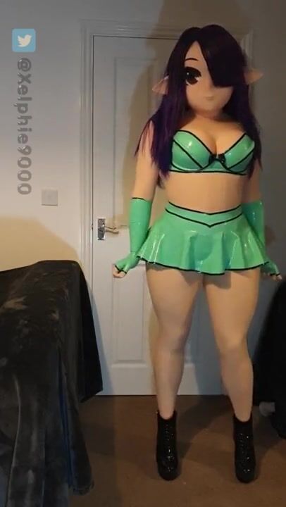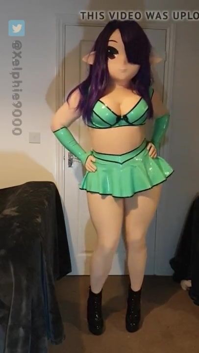 Xelphie in Green Latex Miniskirt and Top